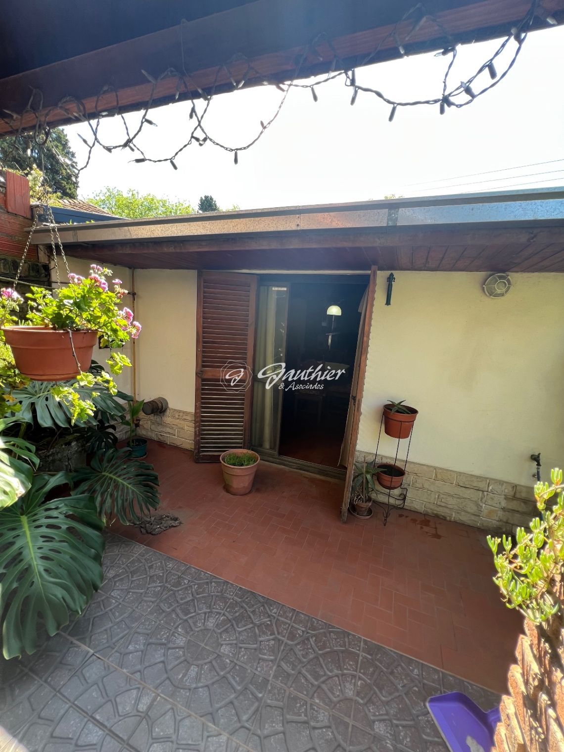 El exterior de la propiedad es un verdadero oasis, con un patio adornado por frutales que invitan a disfrutar del aire libre. El quincho, equipado con parrilla, se convierte en el lugar ideal para reuniones y asados con amigos y familiares. La propiedad también cuenta con un garage cubierto para dos vehículos y se encuentra en perfecto estado de conservación, con aberturas de madera que realzan su calidez.